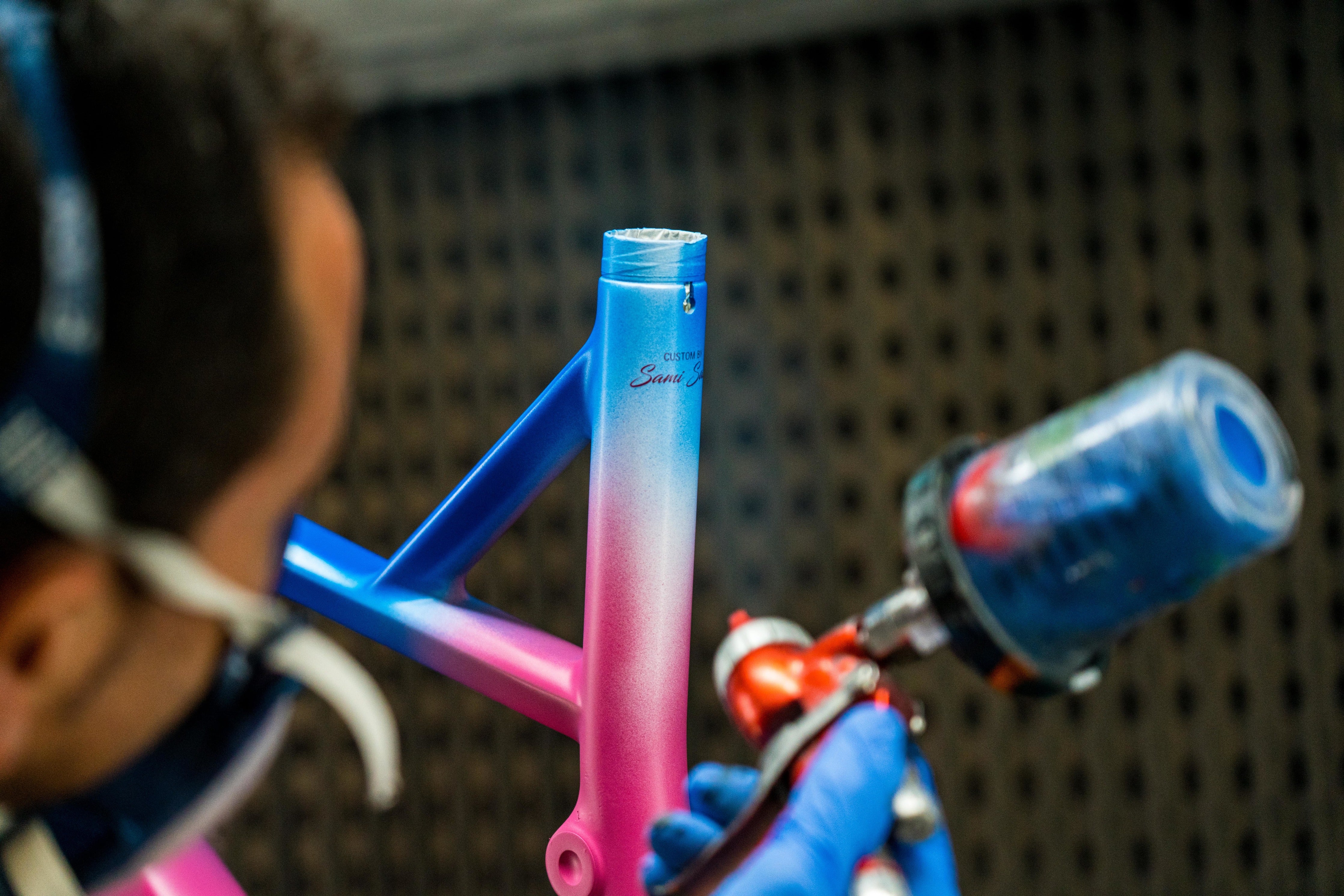 Sami is not only a bike rider she's also an artist. A former crit racer turned photographer/producer, adventurer, surfer... (we can't wait to see which passion she throws herself at next), Sami has a soft spot for exploring nature's great beauty. Her love of sunsets was the starting point of what has become a truly unique bike; "Fading" as Sami herself has named it.