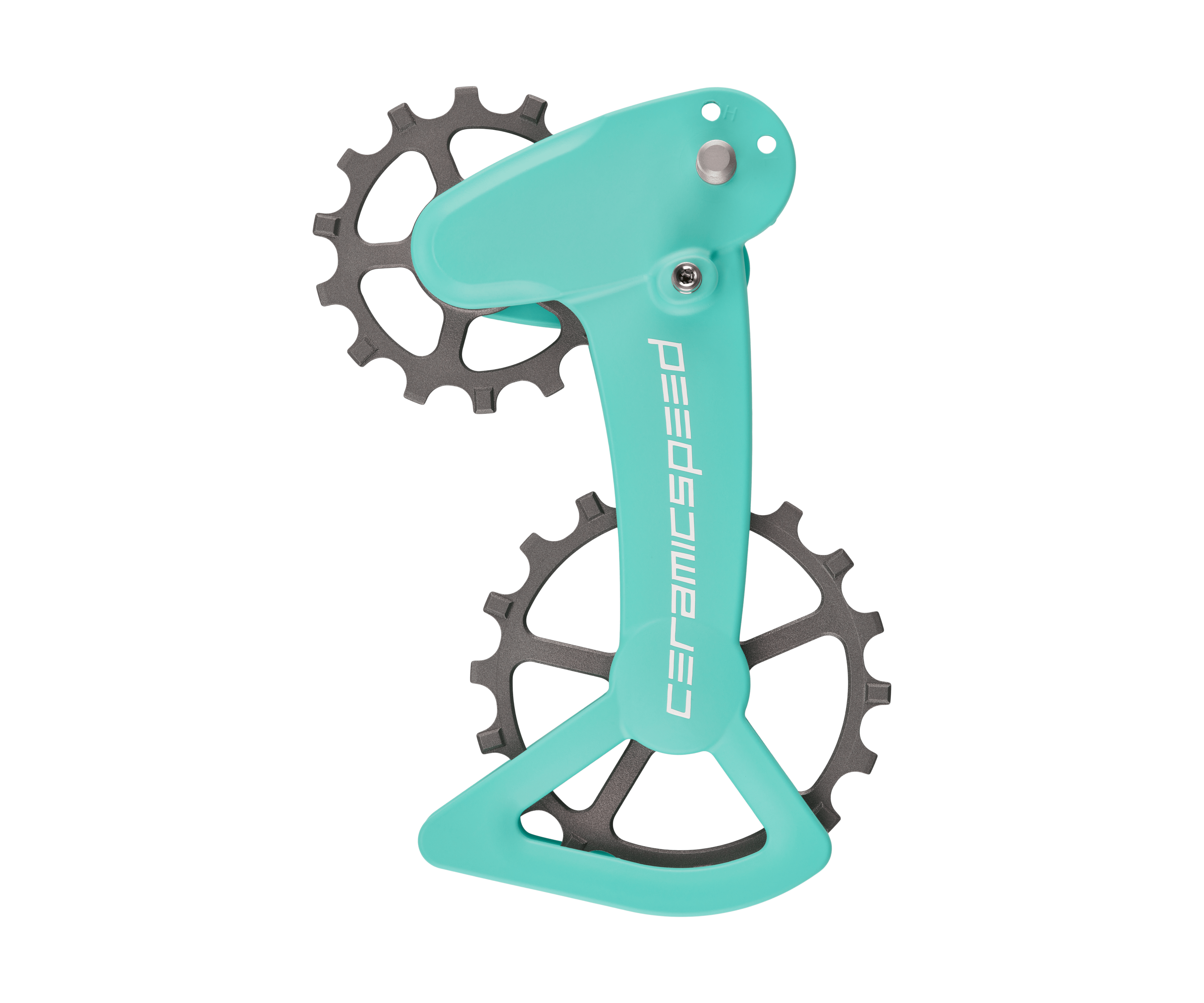 The OSPW X System reduces friction 35-40% over stock pulley configuration. The lightweight custom molded carbon fiber cage ensures durability. This design allows the use of the same length chain as stock pulleys.The 14-tooth upper and 18-tooth lower pulley profiles ensure stable chain retention without added drag.The OSPW X System is developed, designed and handbuilt in Denmark - and test proven globally.Only compatible with 1X specific derailleurs.In the box: Complete OSPW X for Shimano XT/XTR 12s Cerakote system CeramicSpeed Oil for Pulley Wheel Bearings, 15 ml. dropper bottle Decal Compatibility Matrix Installation Guide