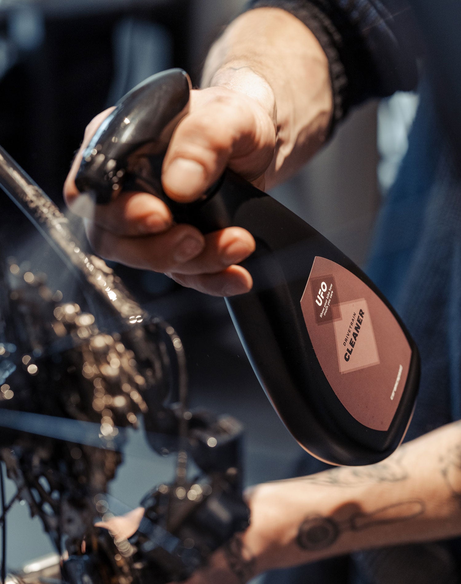 This eco-friendly Drivetrain Cleaner thoroughly removes grease and grime from all drivetrain components. The unique properties dissolve wax from internal rollers, and all surfaces of chain links.